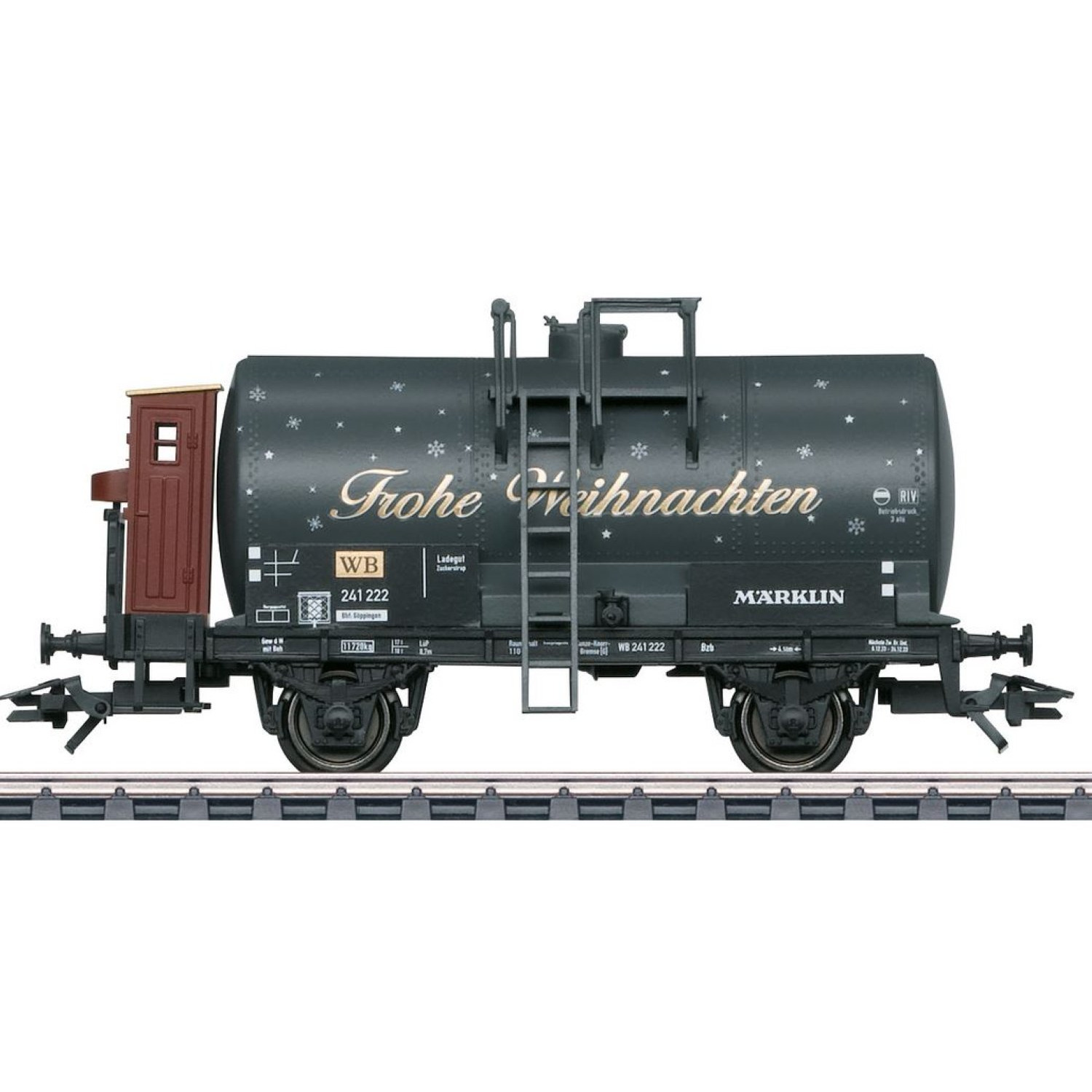 Vorbild: Zweiachsiger Kesselwagen mit Bremserhaus. Hier als Wagen der Weihnachts-Bahn (WB) in weihnachtlicher Gestaltung.