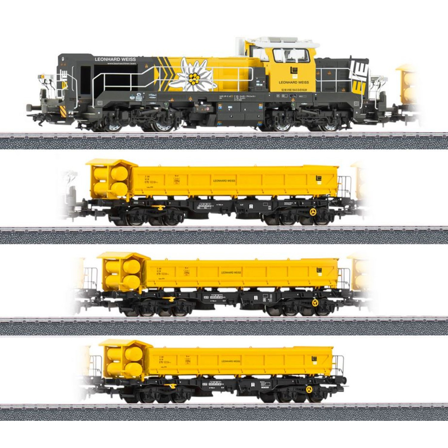 Modell: Diesellokomotive mit Digital-Decoder mfx+ und umfangreichen Licht- und Geräuschfunktionen. Geregelter Hochleistungsantrieb. Alle Achsen angetrieben. Fahrtrichtungsabhängig wechselndes Dreilicht-Spitzensignal und zwei rote Schlusslichter konventionell in Betrieb, digital schaltbar. Spitzensignal an Lokseite 2 und 1 jeweils separat digital abschaltbar. Doppel-A-Licht-Funktion. Beleuchtung mit wartungsfreien warmweißen und roten Leuchtdioden (LED). Führerstandbeleuchtung und Fernlicht separat digital schaltbar. Detaillierte Ausführung der Zweiseitenkippwagen mit Kippfunktion.